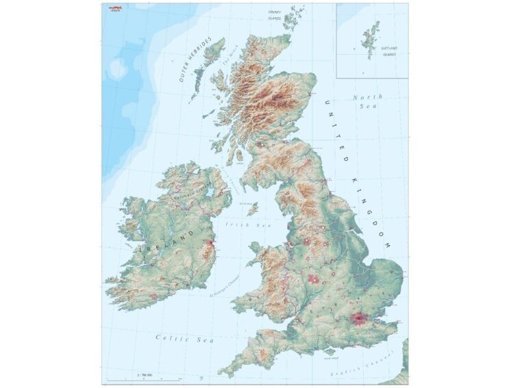 ✓ Velkou mapu Britských ostrovů