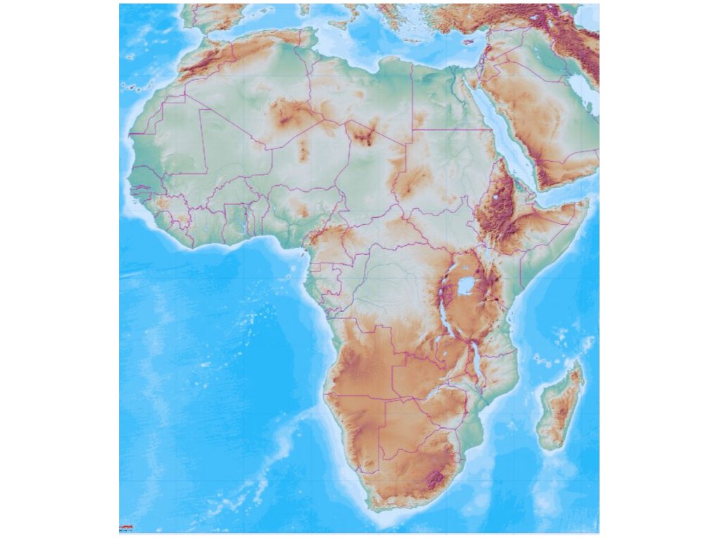 S velkou mapou Afriky získáte detailní obraz celého kontinentu ve velkém rozměru a s podrobným reliéfem.