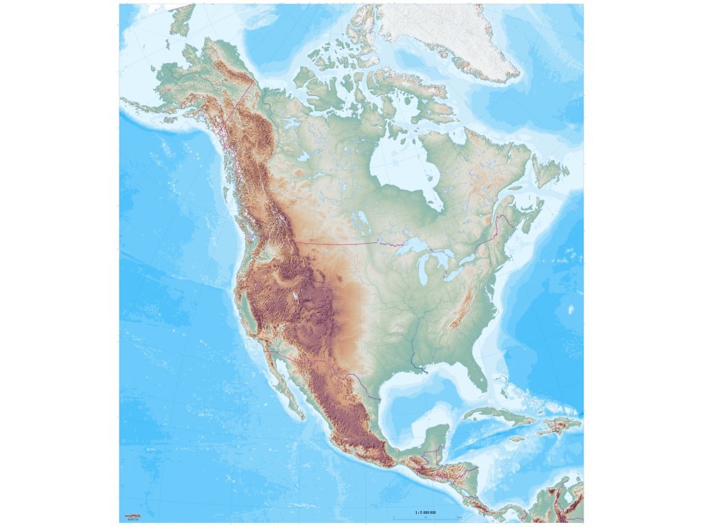 - Velkou mapu Severní Ameriky v rozměru 155x173 cm