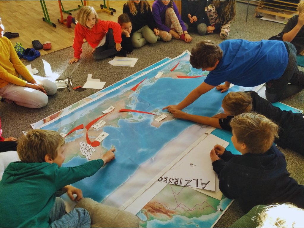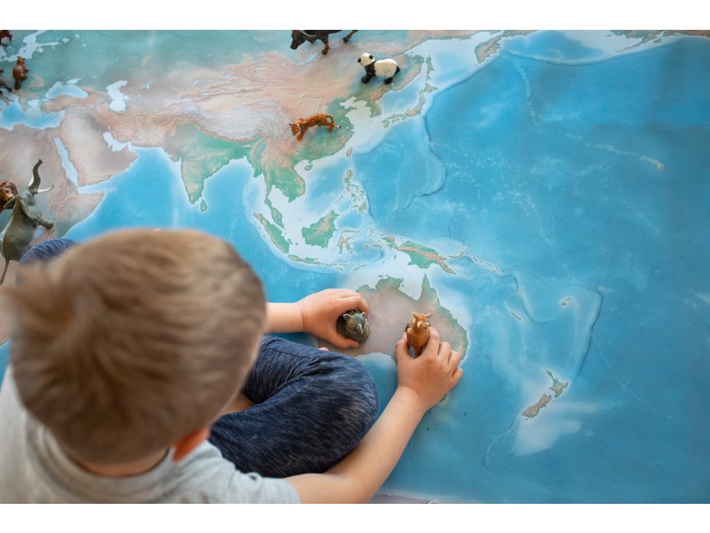 Díky velkým rozměrům a celkovému provedení mapy mohou děti pracovat společně a vzájemně diskutovat o svých zeměpisných objevech.