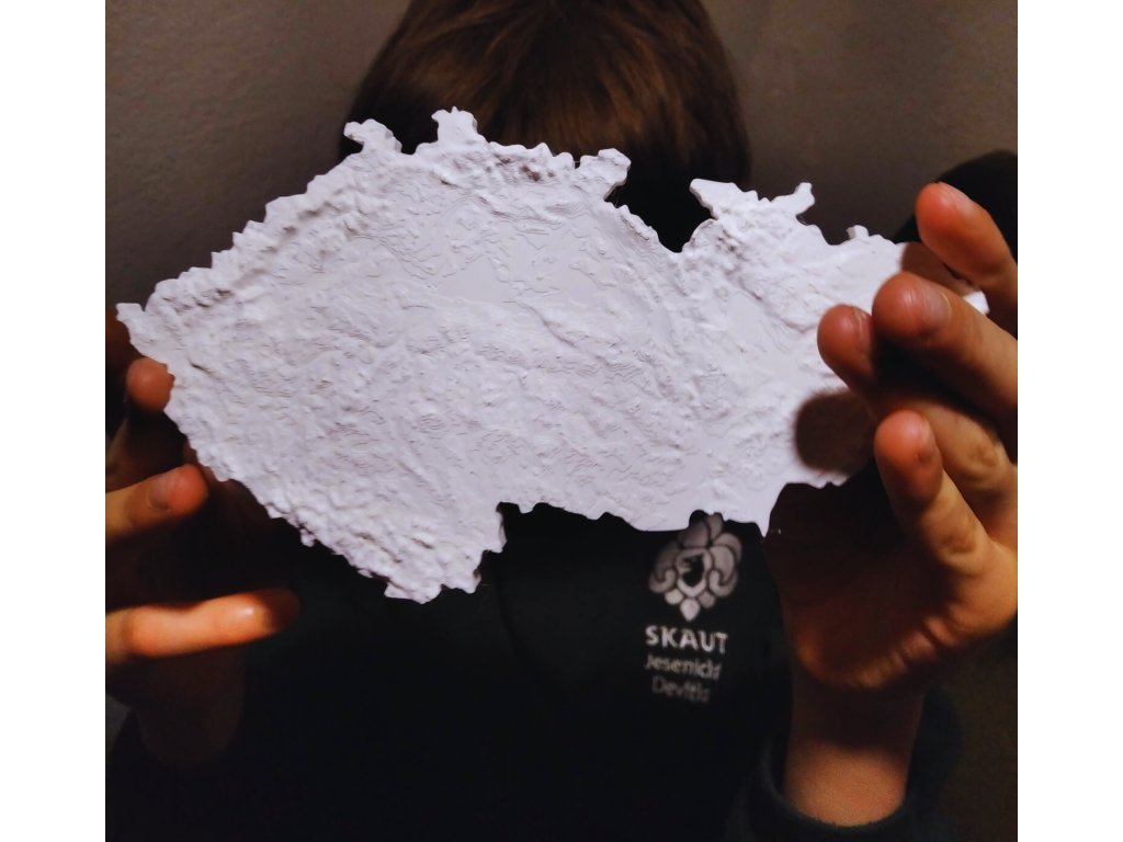 Smazatelnou fixou děti značí místa na zpevněnou mapu Česka a na 3D mapu.