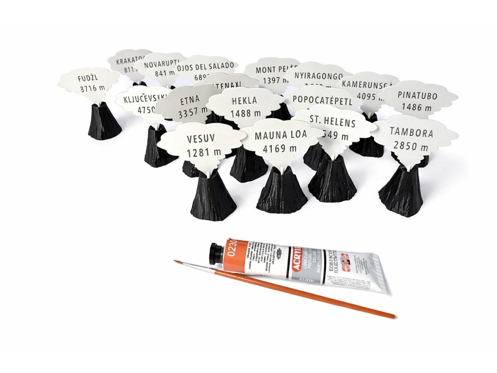 ✅ Obsah balení: 17 modelů sopek, 17 sopečných oblaků (název + výška), pracovní list, kontrolní list, štětec, barva