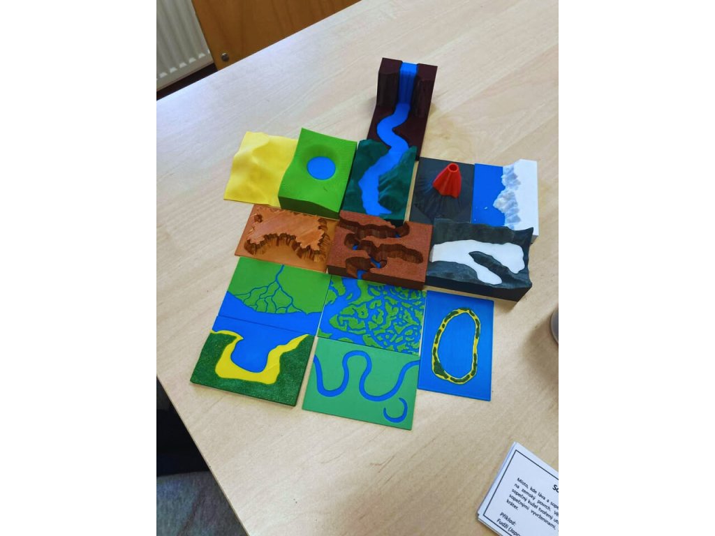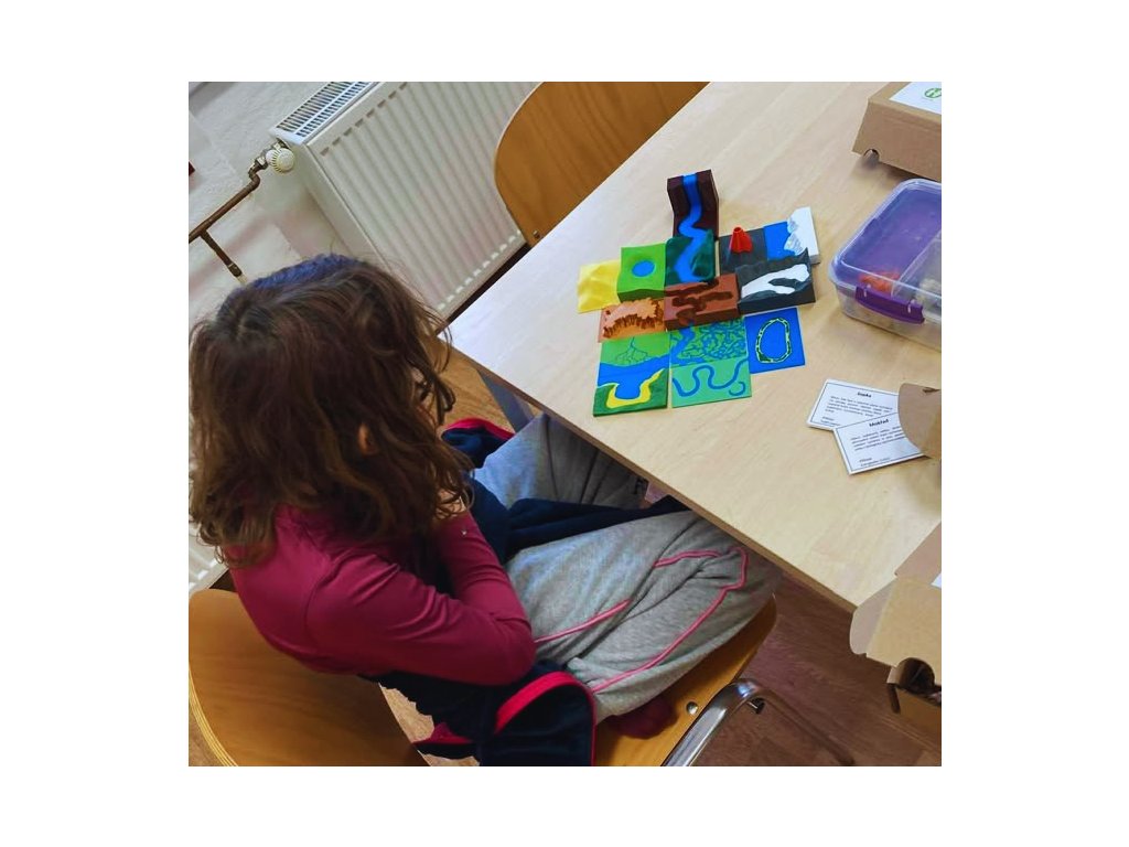 Všechny modely a popisné kartičky jsou označené čísly pro kontrolu, takže děti mohou s pomůckou pracovat samostatně. Děti pomůcka láká o to víc, že některé tvary jsou skládací. Například ledovec se dá vyjmout ze svého podloží.