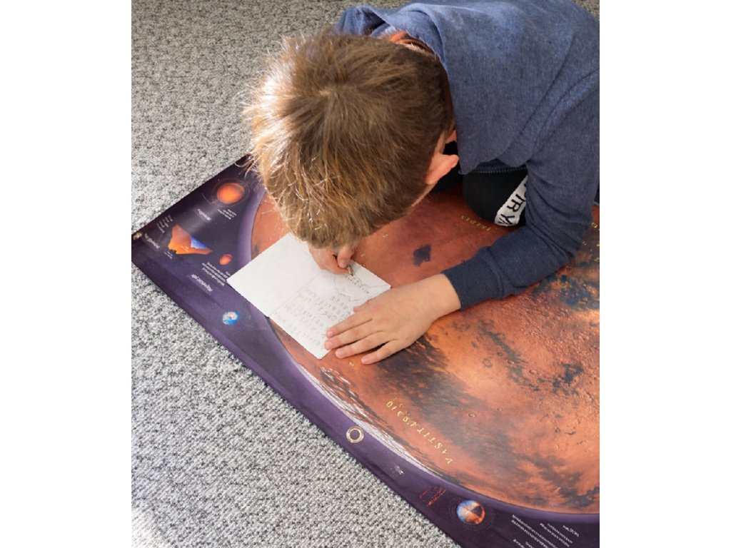 Velká mapa Marsu nabízí detailní pohled na povrch rudé planety ve velkém formátu, který je ideální pro skupinovou práci, prezentace i výuku. Díky přehlednému zpracování umožňuje dětem objevovat geologické útvary Marsu, plánovat vlastní mise nebo pracovat na projektech, jako je kolonizace planety.