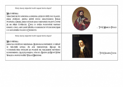 Jmenuji se Marco Polo. Jsem jedním z nejznámějších cestovatelů, pocházím z Itálie. Narodil jsem se v roce 1254 v Benátkách do rodiny obchodníků. Na cestu jsem se vydal ve svých 17 letech a má cesta z Evropy do Asie a zpět trvala krásných 24 let. Své cestopisné zkušenosti jsem vydal knižně, a tak roku 1300 vyšla jedna z prvních cestovatelských příruček. Kniha byla velmi úspěšná a inspirovala mnoho mých pokračovatelů, jako například Krištofa Kolumba. Kniha je dodnes známá pod názvem Cesty Marka Pola. Napsal jsem ji po svém návratu z cest ve vězení, kde mě uvěznili nepřátelé mého města. Poznatky z cest, které jsem v Asii získal byly důležité pro budoucí obchod mezi Benátkami a východní Asií. Má kniha je o mém putování po souši, ale i po moři, útrapách, které jsme na cestách prožili, ale také například o setkání s chánem, ale také třeba s jednorožci (dnes již víme, že to byli nosorožci). Je po mě pojmenován kráter na odvrácené straně Měsíce.