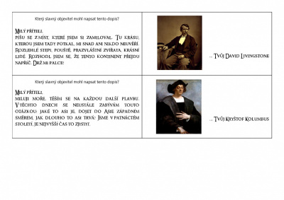 Jmenuji se David Livingstone a narodil jsem se v roce 1813 ve Skotsku. Vyrůstal jsem v chudé rodině jako jedno ze sedmi děti. Bydleli jsme tehdy v jedné místnosti činžovního domu pro pracovníky továrny na bavlnu. V deseti letech jsem musel v továrně začít také pracovat a ze mzdy jsem si hned první týden koupil učebnici do školy. Kromě práce jsem studoval teologii, řečtinu a medicínu. Když jsem měl 27 let, stal se ze mě misionář. Vydal jsem se do Jižní Afriky. Během svého dalšího působení v Africe jsem získal pověst oddaného křesťana, odváženého průzkumníka a bojovníka proti otroctví. Na svých misijních cestách jsem prozkoumal řadu Evropanům neznámých oblastí. Jako první běloch jsem přešel poušť Kalahari, prozkoumal řeku Zambezi, na níž jsem objevil nádherné vodopády, které jsem měl tu čest pojmenovat po královně Vikrorii. Stal jsem se prvním člověkem, který přešel Afriku napříč. Na jedné z cest jsem se dokonce ztratil a byl jsem čtyři roky nezvěstný. Zemřel jsem ve věku šedesáti let při hledání pramenů Nilu. Mé srdce pohřbili u vodopádů, mé tělo je pohřbeno v Anglii.